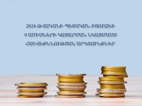 Հաշվեքննիչ պալատի 2024 թվականի գործունեության ծրագրի 1‑ին մասով նախատեսված 8 մարմիններում, օրենքով սահմանված 4 ամսվա ընթացքում, իրականացվել են պետական բյուջեի 9 ամիսների կատարման նկատմամբ հաշվեքննություններ։ Հաշվեքննությունները նպատակ են հետապնդել կուտակել հաշվեքննության ապացույցներ, որոնց հիման վրա պետք է ձևավորվի ՀՀ 2024 թվականի պետական բյուջեի տարեկան կատարման գնահատականը։