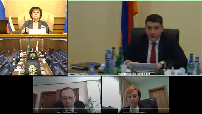 Նիստում ելույթով հանդես եկան ԵԱՏՄ անդամ պետությունների բարձրագույն հաշվեքննիչ մարմինների պատվիրակությունների ղեկավարները: Հայաստանի Հանրապետության պատվիրակության ղեկավար Հաշվեքննիչ պալատի անդամ Կարեն Առուստամյանը իր ելույթում նշեց, որ լիազորված մարմինների (գանձապետարանների) կողմից 2019 թվականին ԵԱՏՄ պայմանագրով սահմանված պահանջները հիմնականում ապահովվել են: Սակայն դեռևս առկա է խնդիր, որը կրում է շարունակական բնույթ և տարեց տարի մնում է չլուծված: Դա վերաբերվում է Ղազախստանում ընդերքօգտագործողների կողմից 2014-2019թթ. ժամանակահատվածում վճարված, սակայն ԵԱՏՄ անդամ պետությունների միջև չբաշխված ներմուծման մաքսատուրքերի գումարներին: